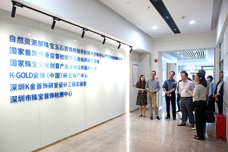 2021年4月21日上午 ,,,,, ,中国地质大学(武汉)珠宝学院党委书记薛保山、珠宝学院院长尹作为、原党委书记、中国职业手艺教育学会珠宝教育专业委员会秘书长梁志、副院长郝亮、首饰系主任孙仲鸣、珠宝学院团委副书记汤凡渺等一行贵宾 ,,,,, ,在公司总裁办主任张媛媛、宝创协秘书长成宝林的向导下 ,,,,, ,先后旅行了w88优德珠宝与自然资源部珠宝玉石首饰治理中心联合共建的国家珠宝文化创意工业基地、贵金属实验室、黄金首饰加工厂 ,,,,, ,以及位于水贝展销中心。。 。。